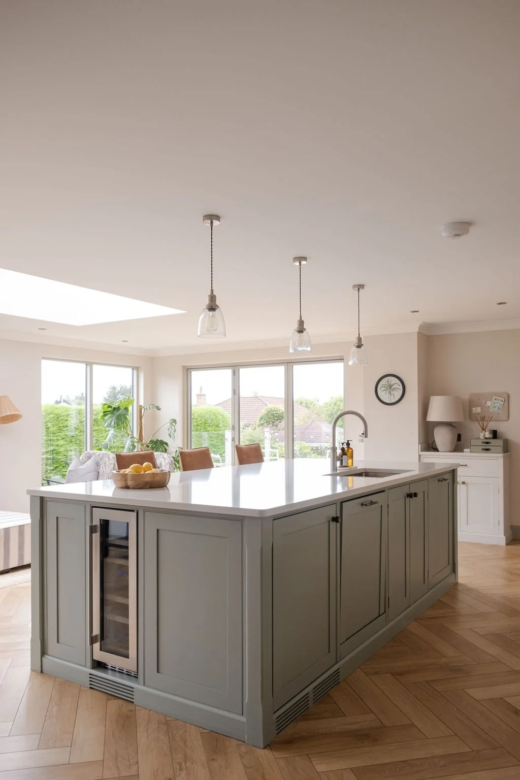 By working closely with the architect and builders from an early stage in the project, we were able to ensure important elements such as lighting, electrical points, windows and doors all suited the layout and design of the interior. We also designed the kitchen from scratch to make it completely bespoke and fit the space perfectly.